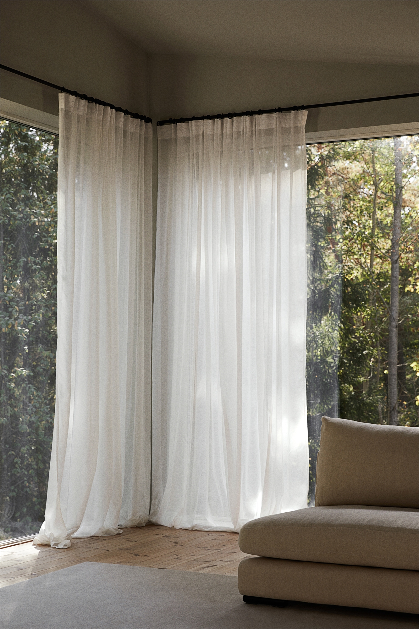 Широкие шторы из вуали, изготовленной из смеси хлопка и полиэстера. Многоходовой подхват на шторах позволяет подвешивать их в разных стилях, что делает их подходящими для различных штанг или карнизов и позволяет легко менять внешний вид штор. Эти шторы пропускают свет в комнату, обеспечивая при этом приватность. Крючки в комплект не входят. Окантованные.
