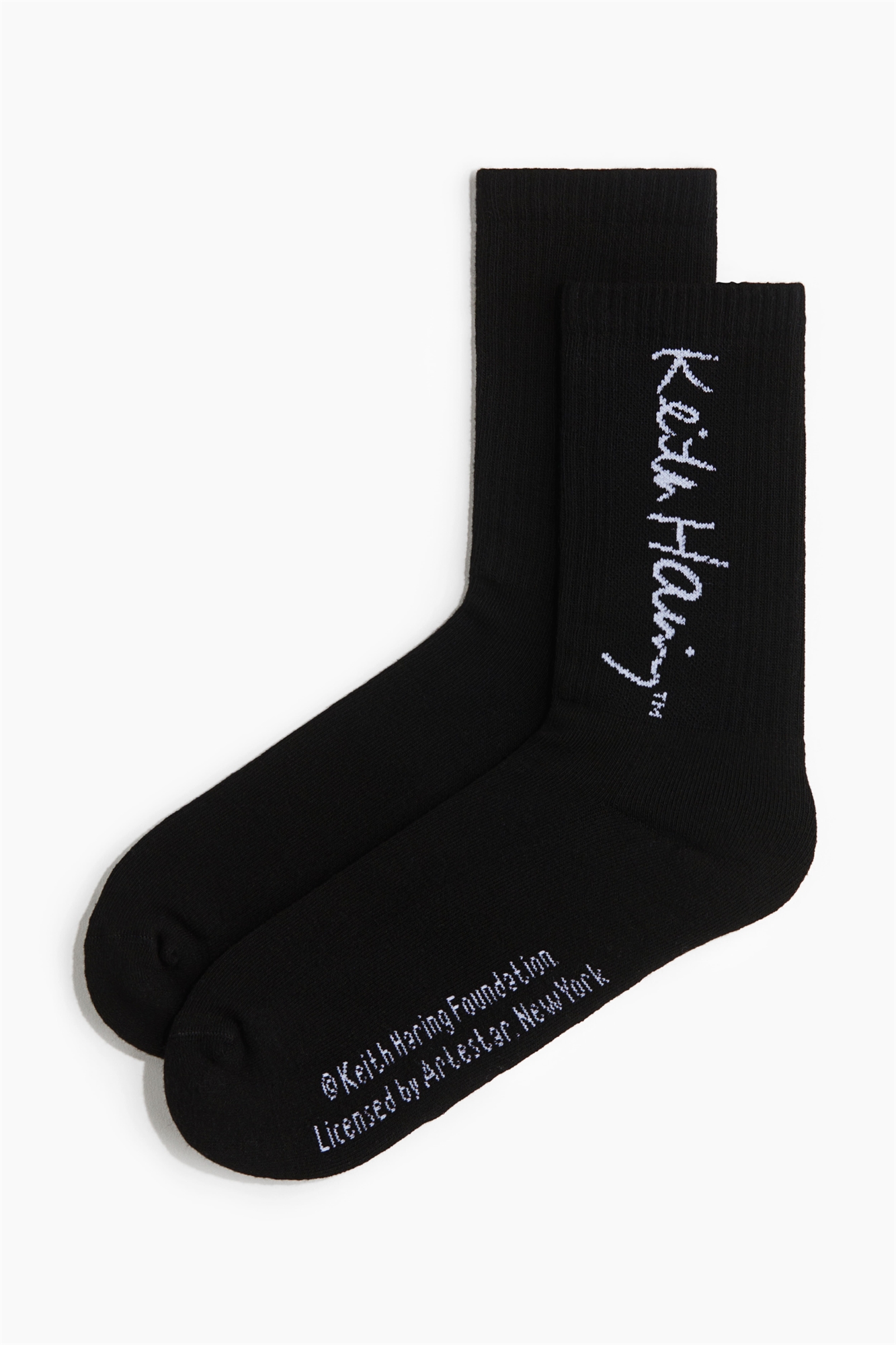 Носки тонкой вязки из мягкого хлопкового микса. Высокий ребристый голенище с принтом.