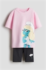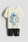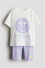 Комплект из футболки и велошорт из мягкого хлопкового джерси. Футболка с принтом и спущенными плечами. Шорты с эластичной талией.