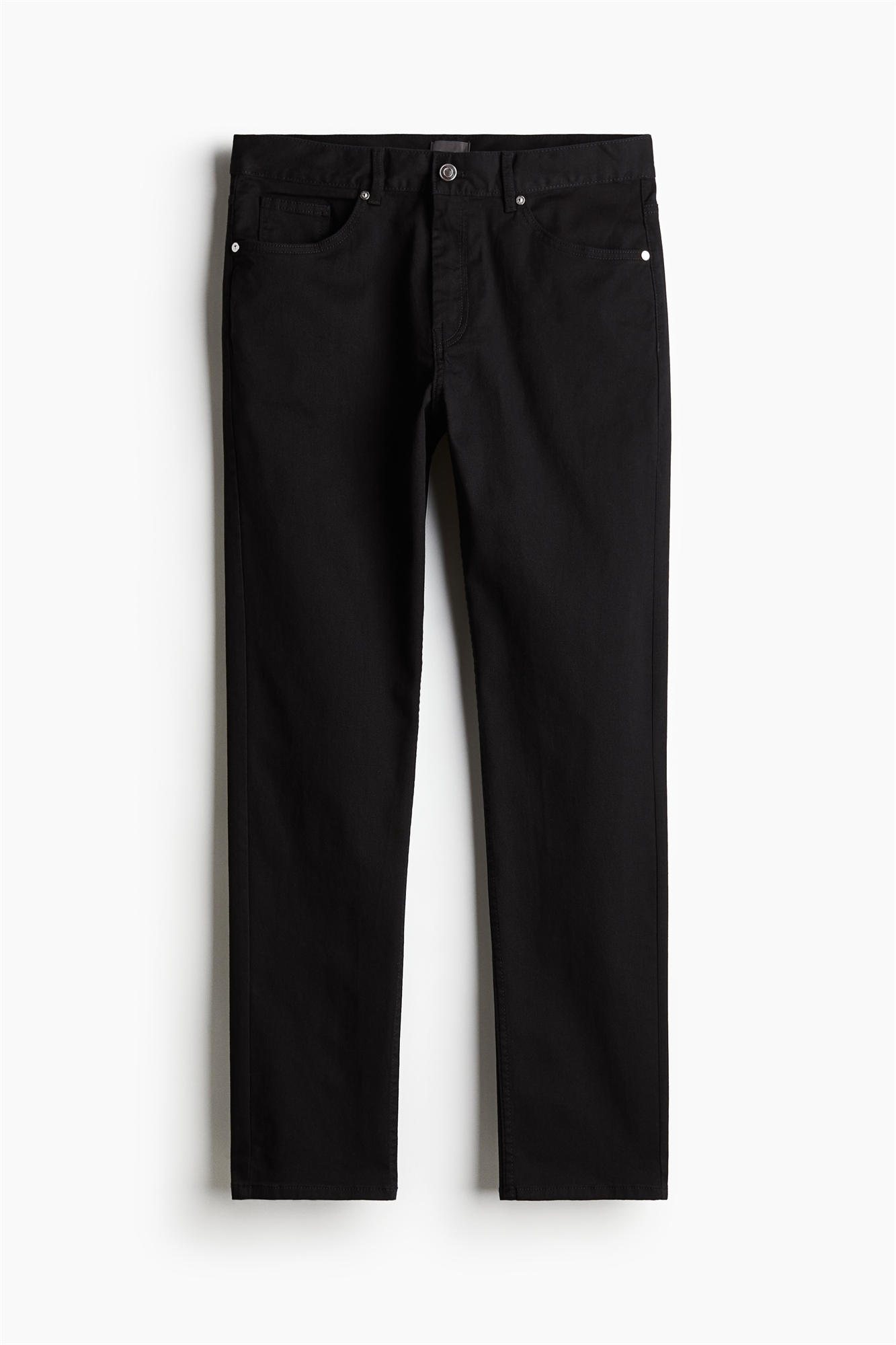 Зауженные брюки с 5 карманами из хлопковой саржи с ширинкой на молнии и пуговице.