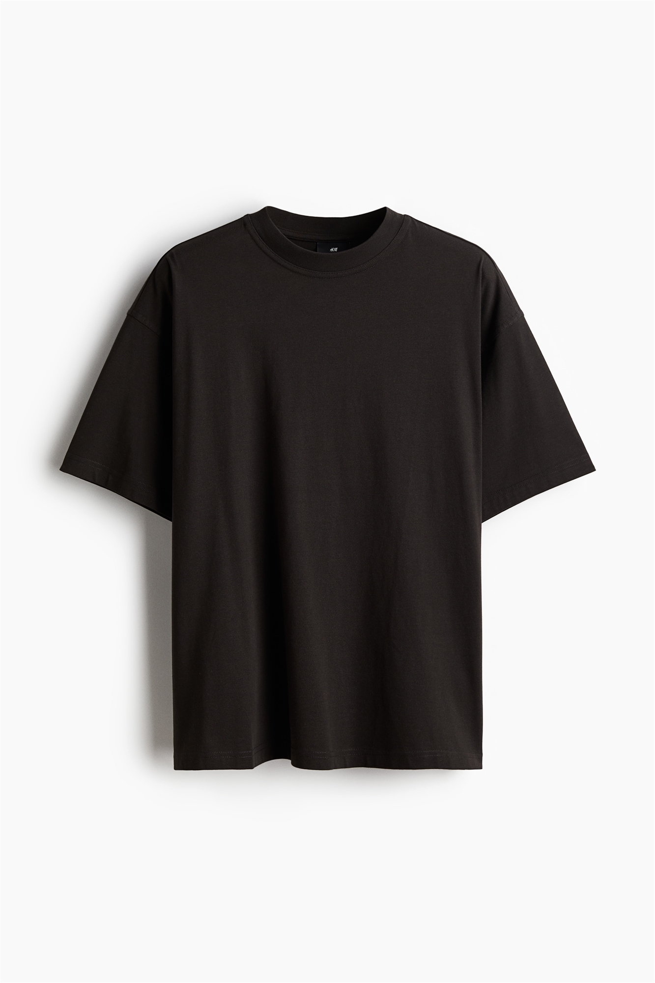 Футболка из хлопкового джерси средней плотности с круглым вырезом в рубчик, спущенными плечами и прямым покроем. Модель свободного кроя для придания ей расслабленного силуэта.