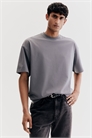 Футболка из хлопкового джерси средней плотности с круглым вырезом в рубчик, спущенными плечами и прямым покроем. Модель свободного кроя для придания ей расслабленного силуэта.