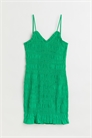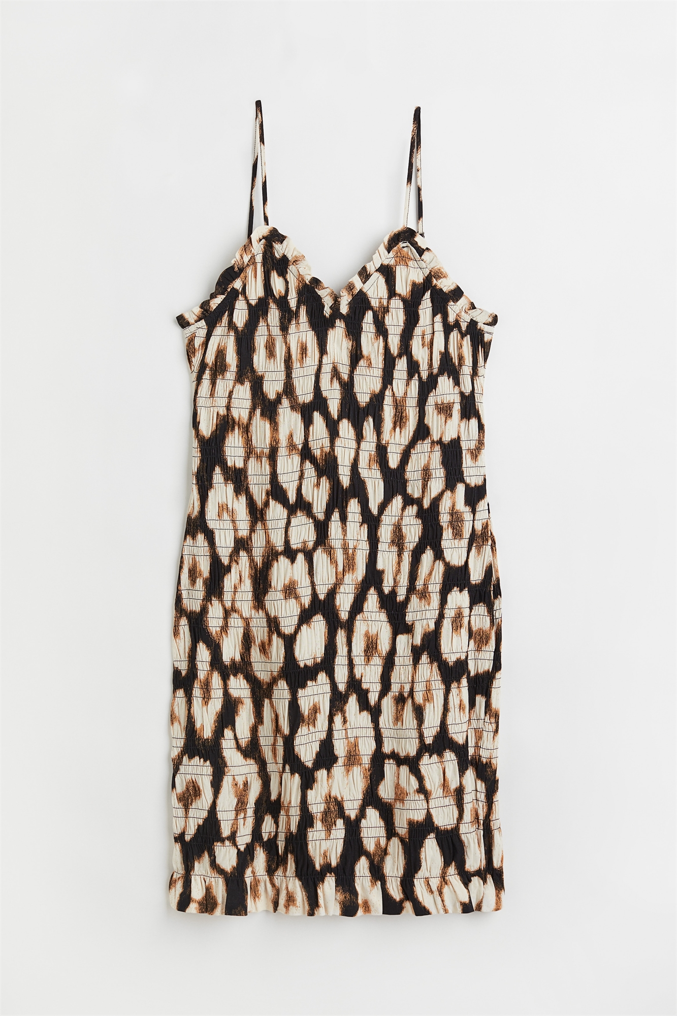 Короткое платье из вискозной ткани с V-образным вырезом и узкими регулируемыми бретелями. Облегающий фасон с воланами по вырезу и подолу. Без подкладки.