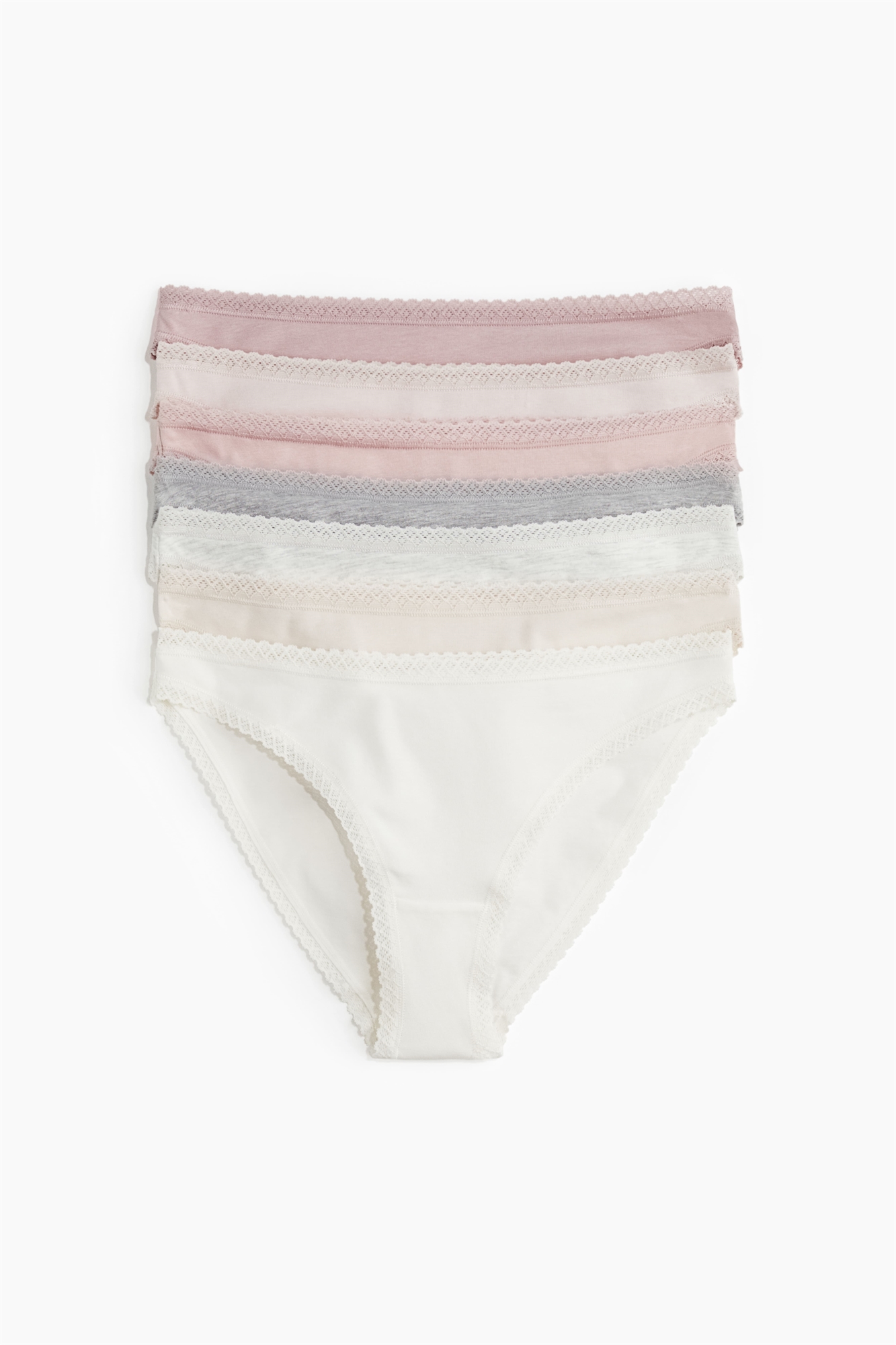 Трусы из хлопкового джерси с кружевной отделкой, средней линией талии, ластовицей и средней степенью защиты сзади.