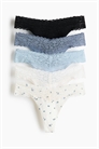 Трусы-стринги из кружева с заниженной V-образной талией, ластовицей и узкими боками.