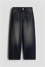 Джинсы с 5 карманами из моющегося денима. Свободная посадка на бедрах и ляжках с опущенной промежностью и широкой штаниной. Регулируемый пояс для идеальной посадки. Застежка на молнию и пуговицу спереди.