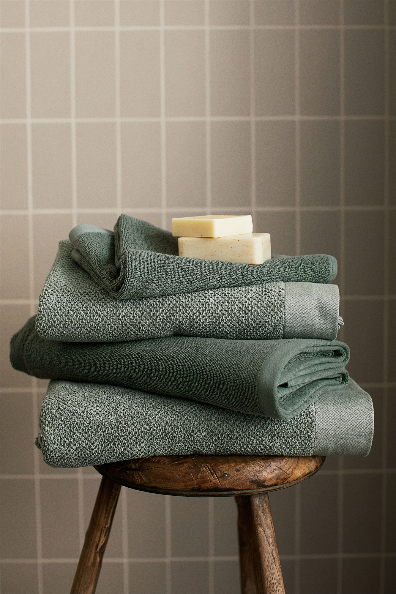 Банное полотенце из мягкой хлопковой махры с высокой степенью впитываемости. Полотенце представлено в широкой цветовой гамме, и его можно легко сочетать с полотенцами с рисунком для создания индивидуального образа дома. Серия включает полотенца нескольких размеров. Вес: 480 GSM.