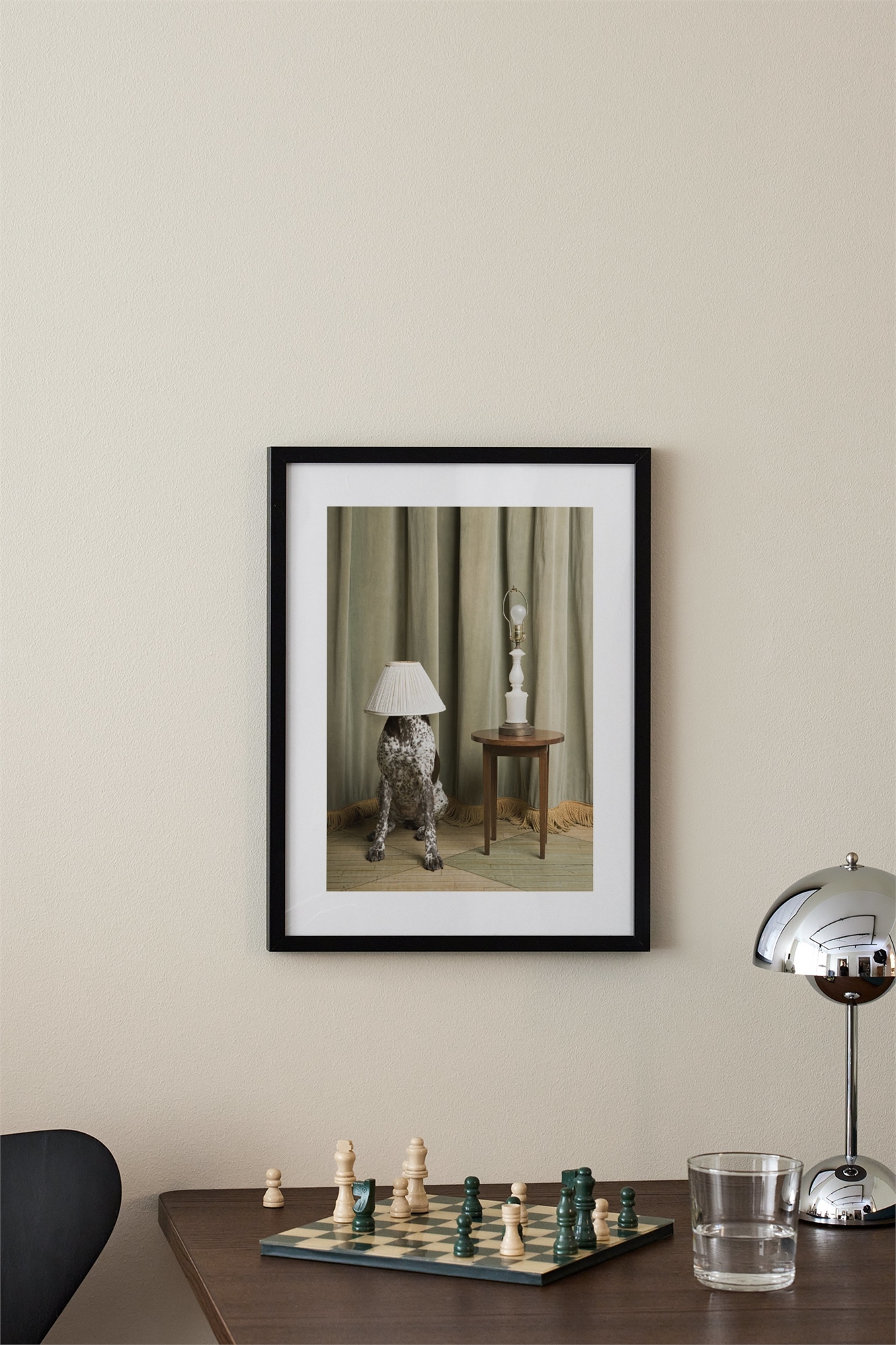 Фотоарт с изображением озорной собаки, прячущейся от своих хозяев под абажуром. Этот модный постер выполнен в нейтральной цветовой палитре и имеет юмористический оттенок. Постер Hide and Seek Poster имеет встроенную белую рамку, которая элегантно обрамляет мотив.