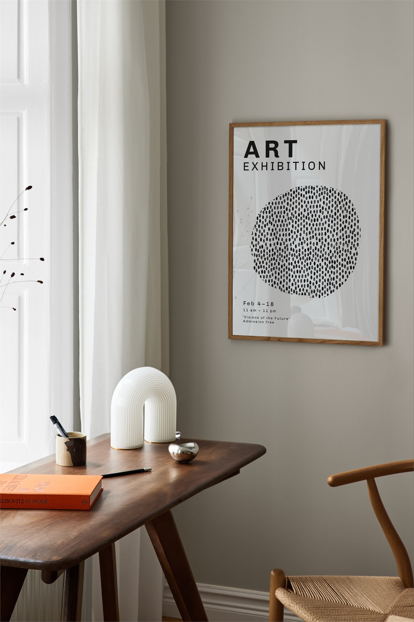 Этот постер, по дизайну напоминающий флаер художественной выставки, придаст уникальный штрих вашему домашнему интерьеру. Нейтральные тона серого и черного никогда не ошибутся.