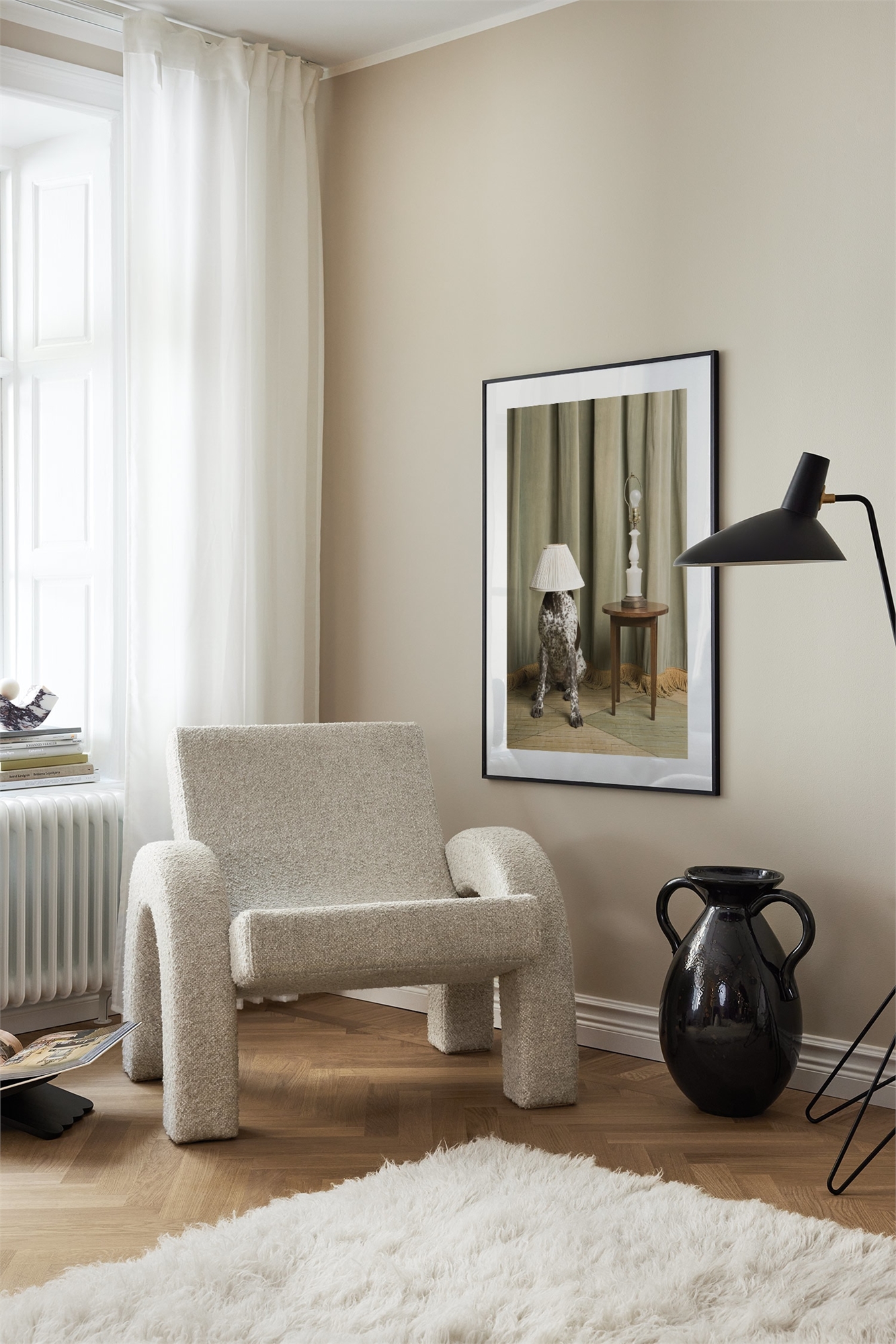 Фотоарт с изображением озорной собаки, прячущейся от хозяев под абажуром. Этот модный постер выполнен в нейтральной цветовой палитре и имеет юмористический оттенок. Постер Hide and Seek имеет встроенную белую рамку, которая элегантно обрамляет мотив.