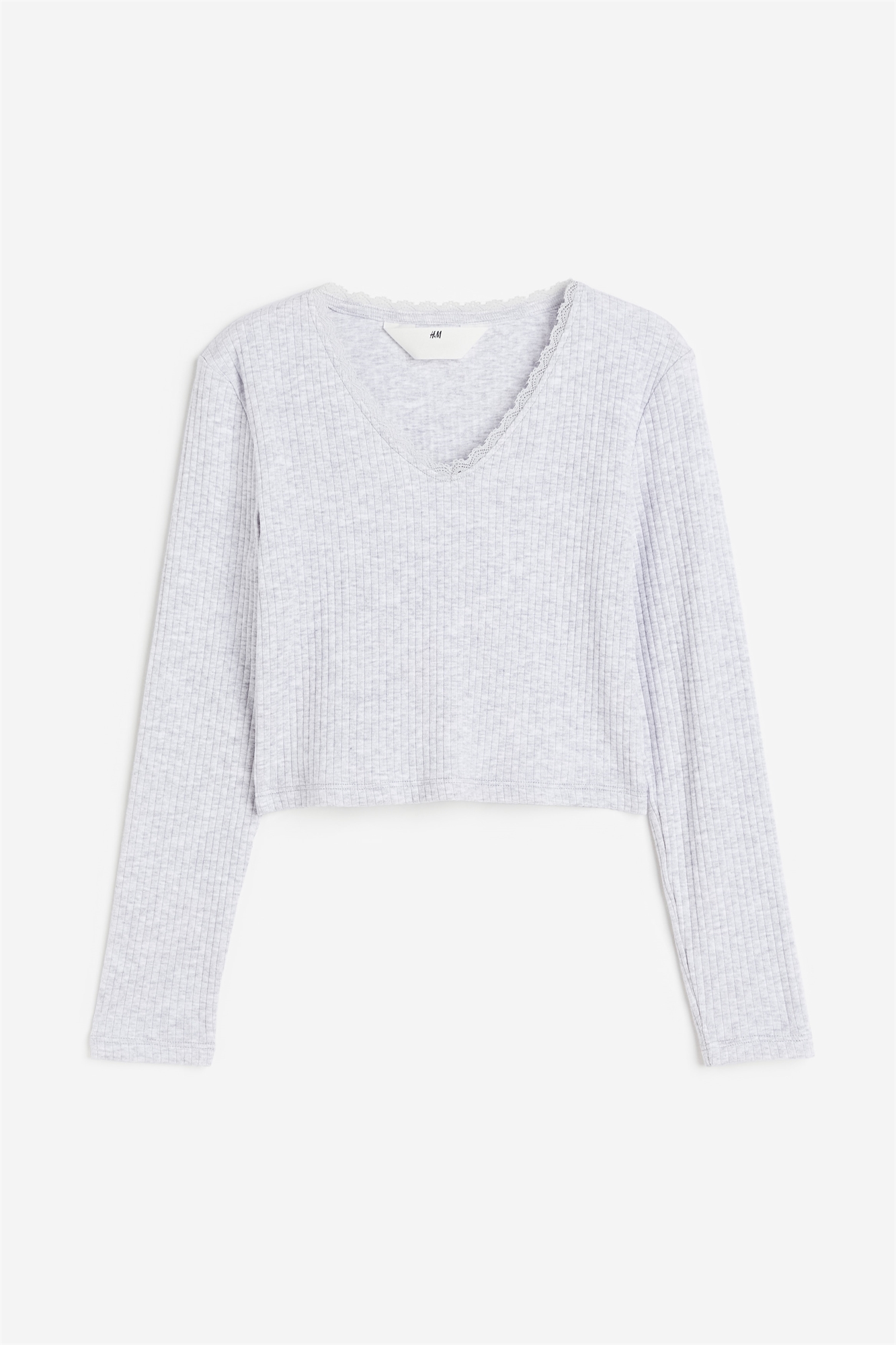 Облегающий топ из мягкого ребристого хлопкового джерси с оверлочными краями, ребристой окантовкой по вырезу горловины и длинными рукавами.