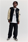 Джинсы с 5 карманами и свободным кроем из моющегося хлопкового денима. Регулируемая резинка на талии, ширинка на молнии и пуговице, прямые ноги.