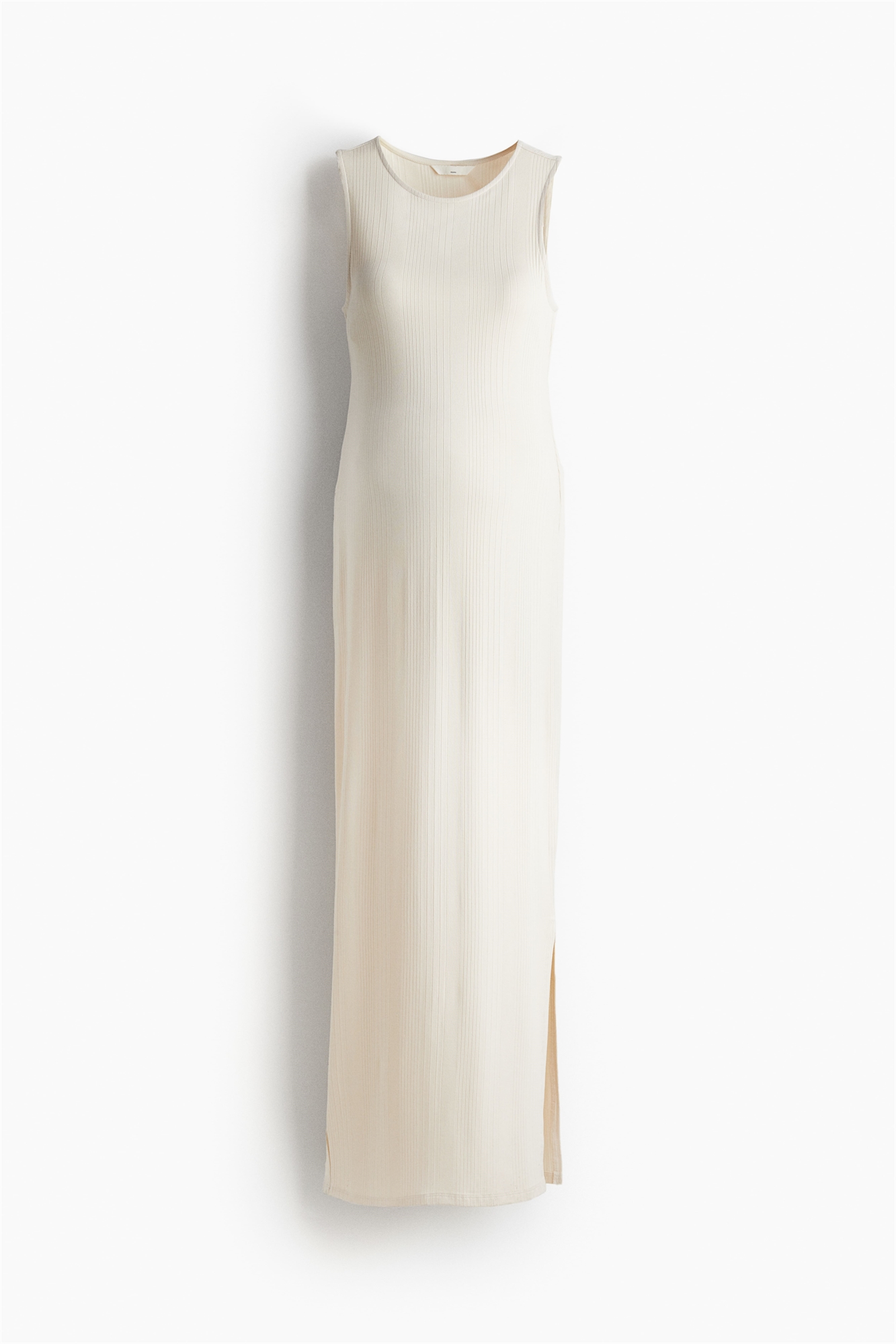 Платье без рукавов из ребристого джерси с круглым вырезом и разрезом с одной стороны.