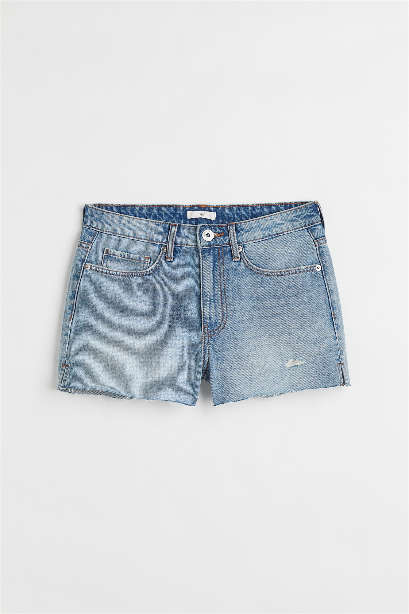 Шорты с 5 карманами из моющегося хлопкового денима. Модель с обычным поясом и открытым краем на концах штанин. Пояс на талии с застежкой на молнию и пуговицу.