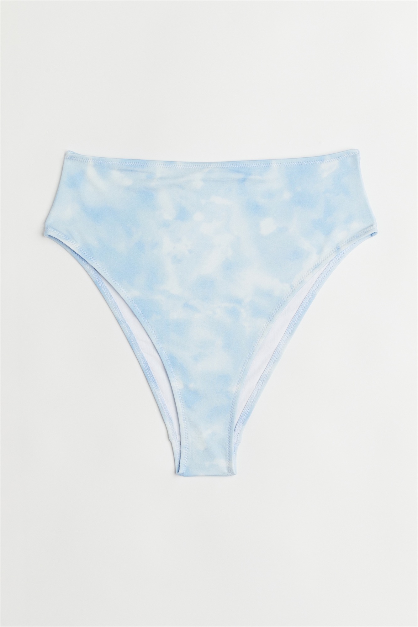 Полностью на подкладке, бикини на талии, с высокими вырезами на ногах и вырезом сзади.