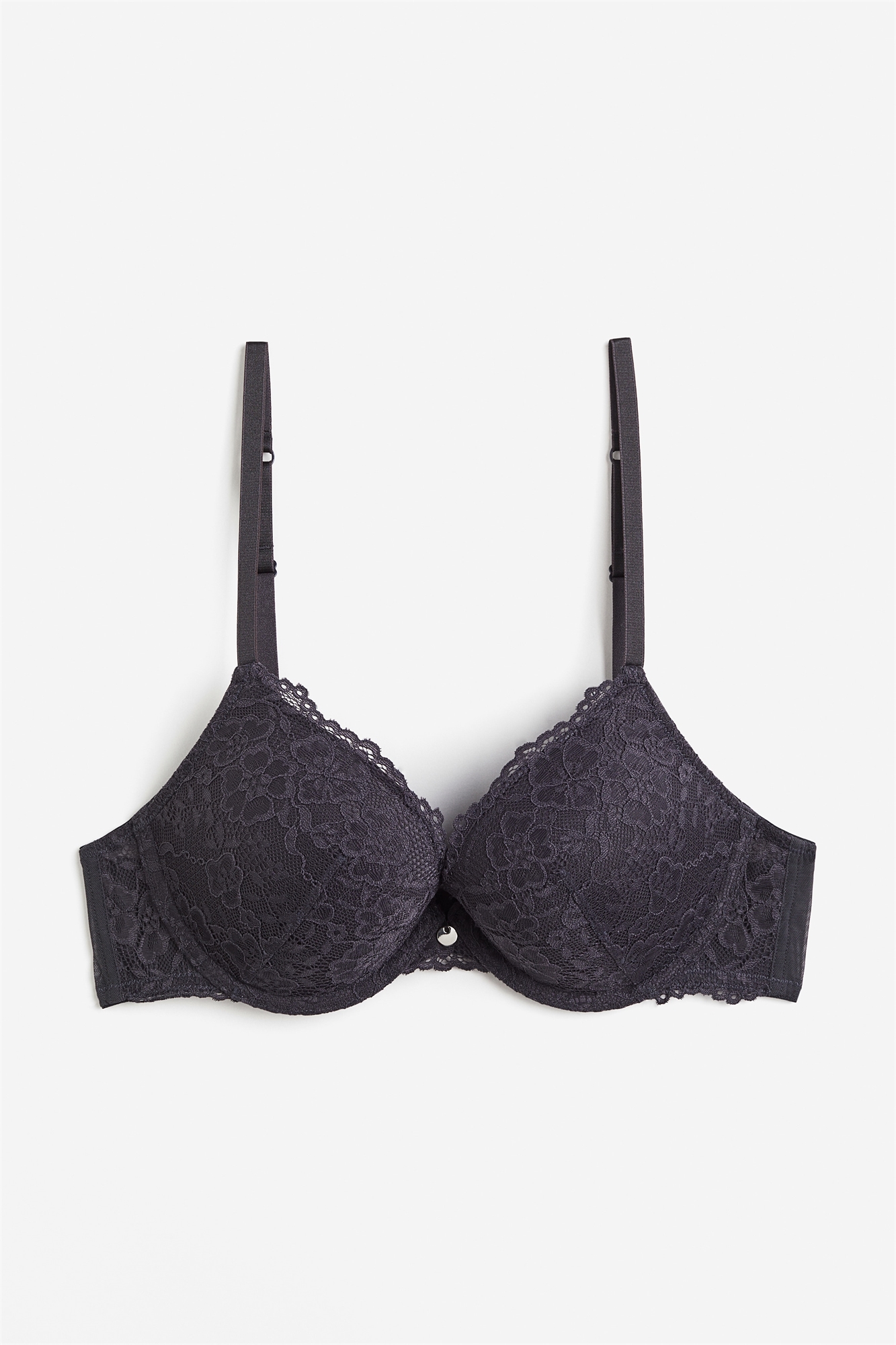 Бюстгальтер пуш-ап из кружева с регулируемыми бретелями и мягкими чашечками с заниженной талией для увеличения объема бюста и декольте. Застежка на крючки и глазки сзади.