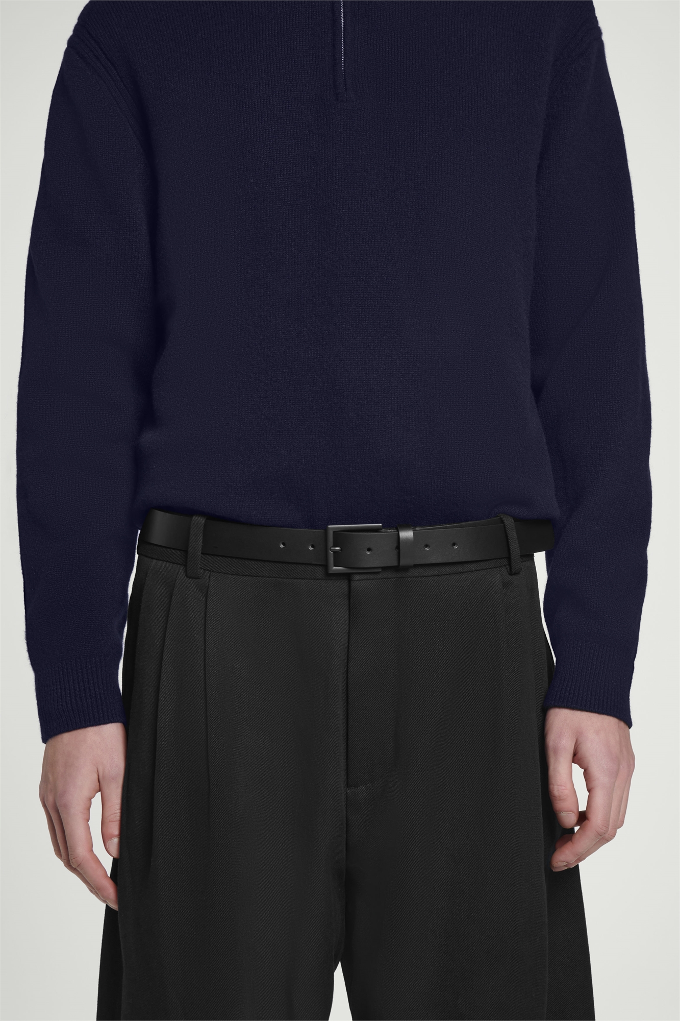 Этот простой ремень изготовлен из экологически чистой кожи хромового дубления. Аксессуар имеет минималистичную петлю для ремня, матовую металлическую пряжку черного цвета и прострочку, сочетающуюся по цвету, что придает ему вневременной вид. Регулируемая длина Верхний материал: 100% кожа. Детали исключены