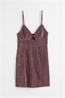 Короткое приталенное платье без рукавов из тканого материала с узкими регулируемыми бретелями и V-образным вырезом с разрезом спереди. Шов под бюстом и незаметная застежка-молния сзади. Без подкладки.