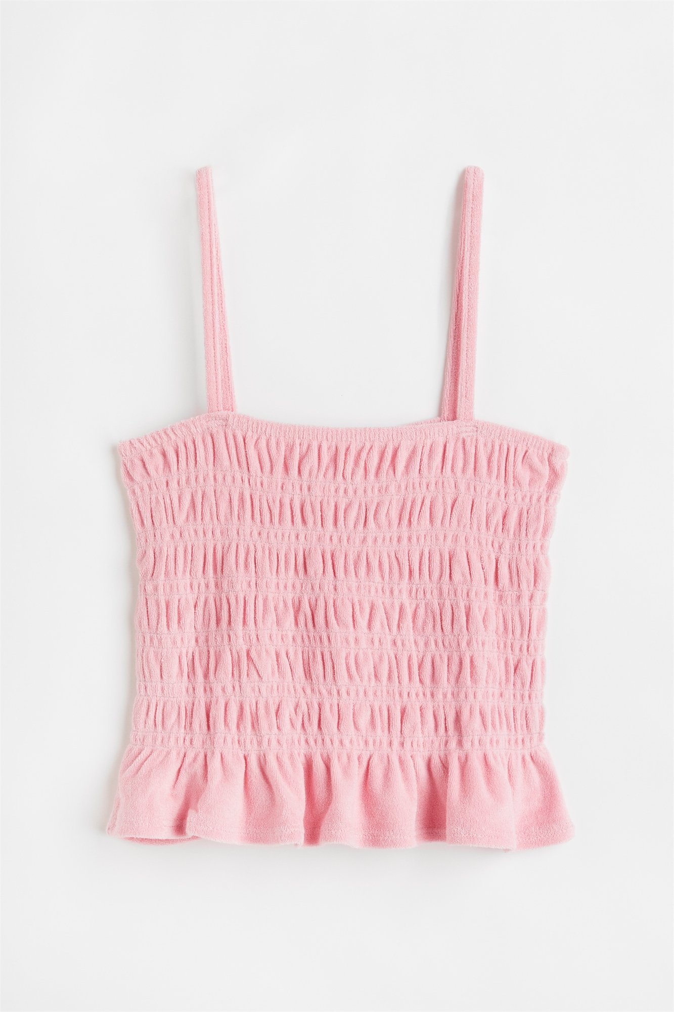 Топ на бретельках из мягкой махровой ткани с узкими бретелями, квадратным вырезом и воланами по подолу.