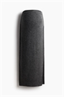 Юбка длиной до колен из мягкого трикотажа с добавлением шерсти. Высокая талия с эластичной резинкой, ребристая отделка на талии и подоле, разрез с одной стороны подола.