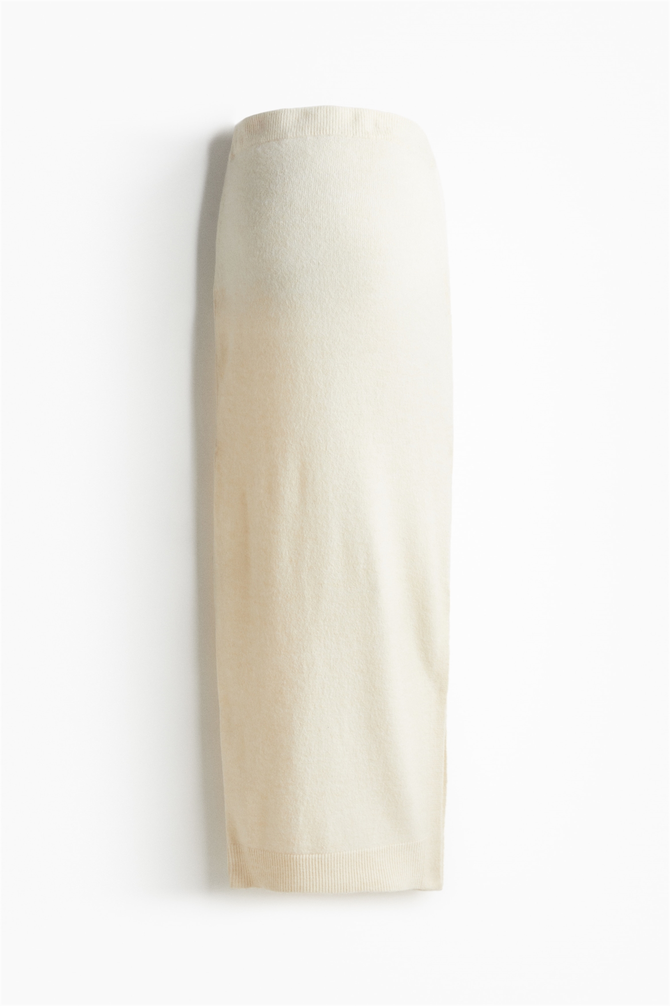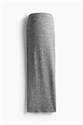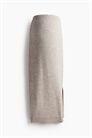 Юбка длиной до колен из мягкого трикотажа с добавлением шерсти. Высокая талия с эластичной резинкой, ребристая отделка на талии и подоле, разрез с одной стороны подола.