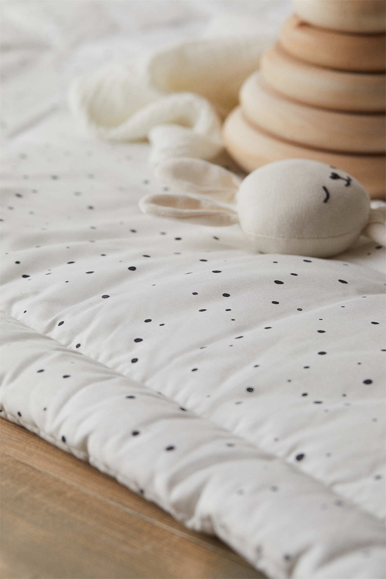 Квадратный коврик с мягкой подкладкой из хлопковой ткани со стегаными швами и принтом по всей поверхности. Этот мягкий коврик - идеальное игровое пространство для знакомства с миром.