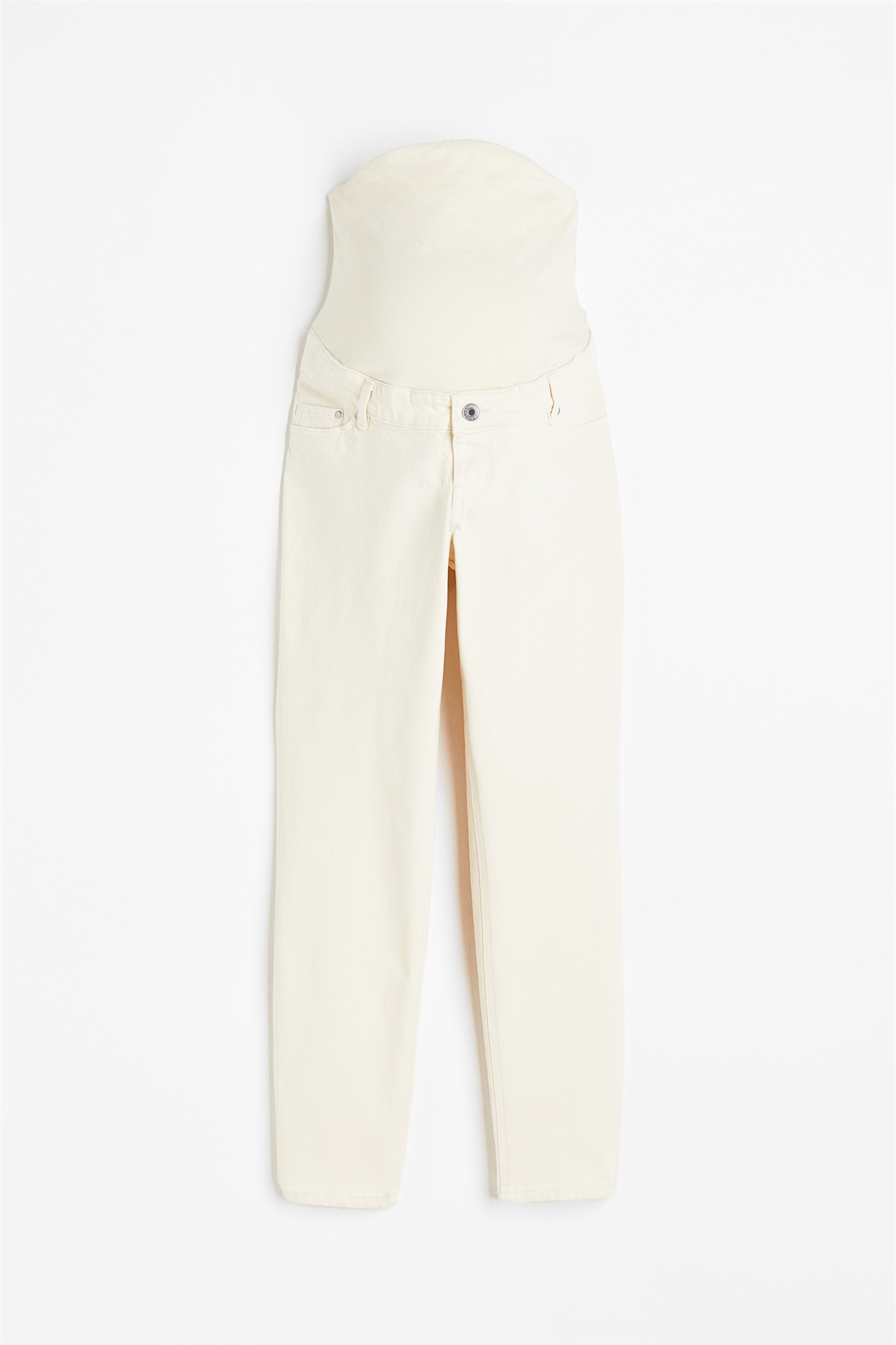 Джинсы длиной до щиколотки из стираного, слегка тянущегося денима с фальшивой ширинкой и фальшивой пуговицей на талии. Фальшивые передние карманы, настоящие задние карманы и зауженные ноги. Широкая панель из джерси на талии для лучшей посадки на животе.