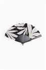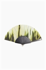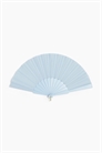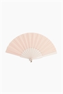 Веер из пластика и ткани с металлическим кольцом в нижней части.