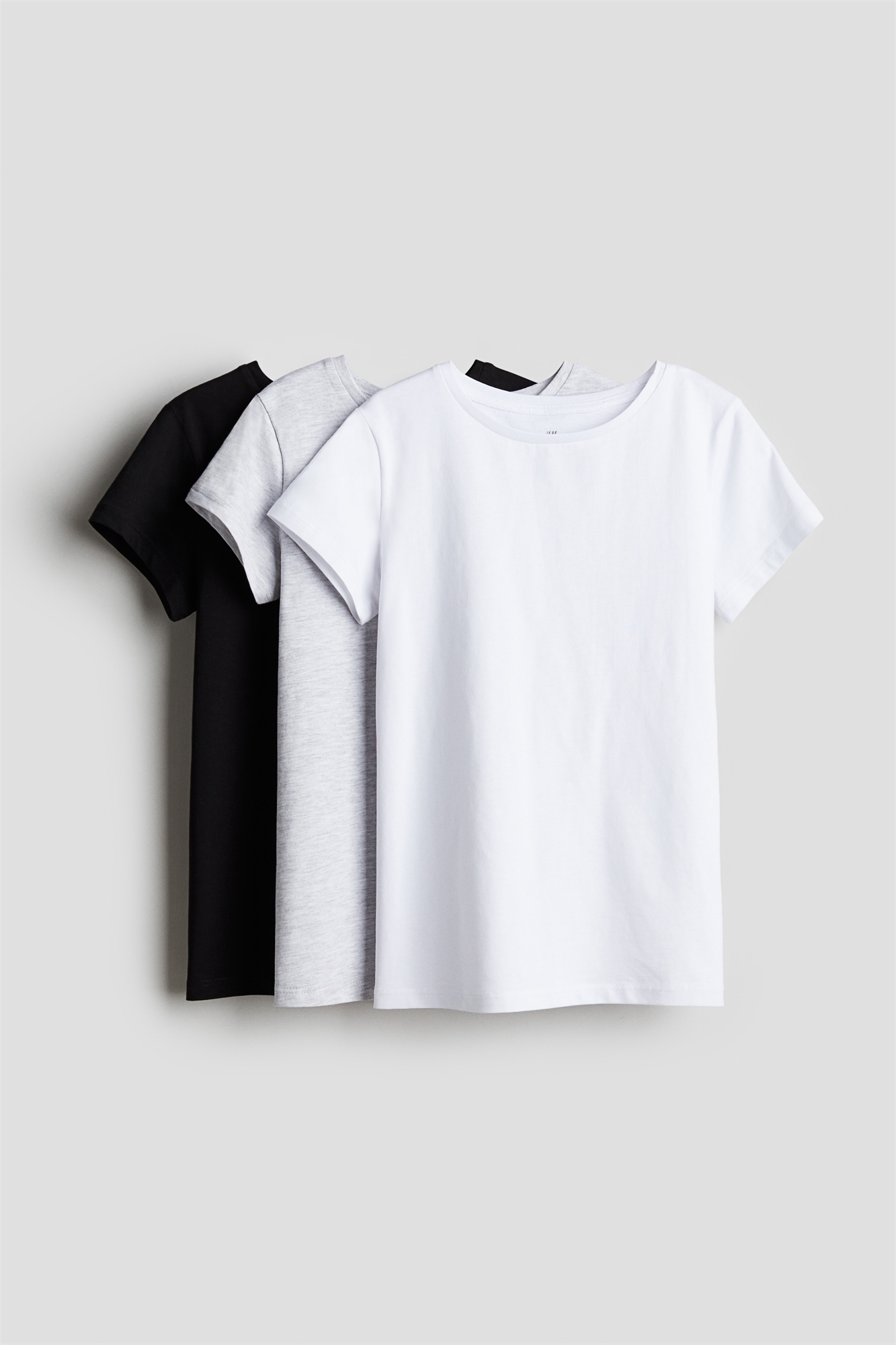 Комплект из трех футболок из мягкого хлопкового джерси с круглым вырезом с ребристой отделкой.