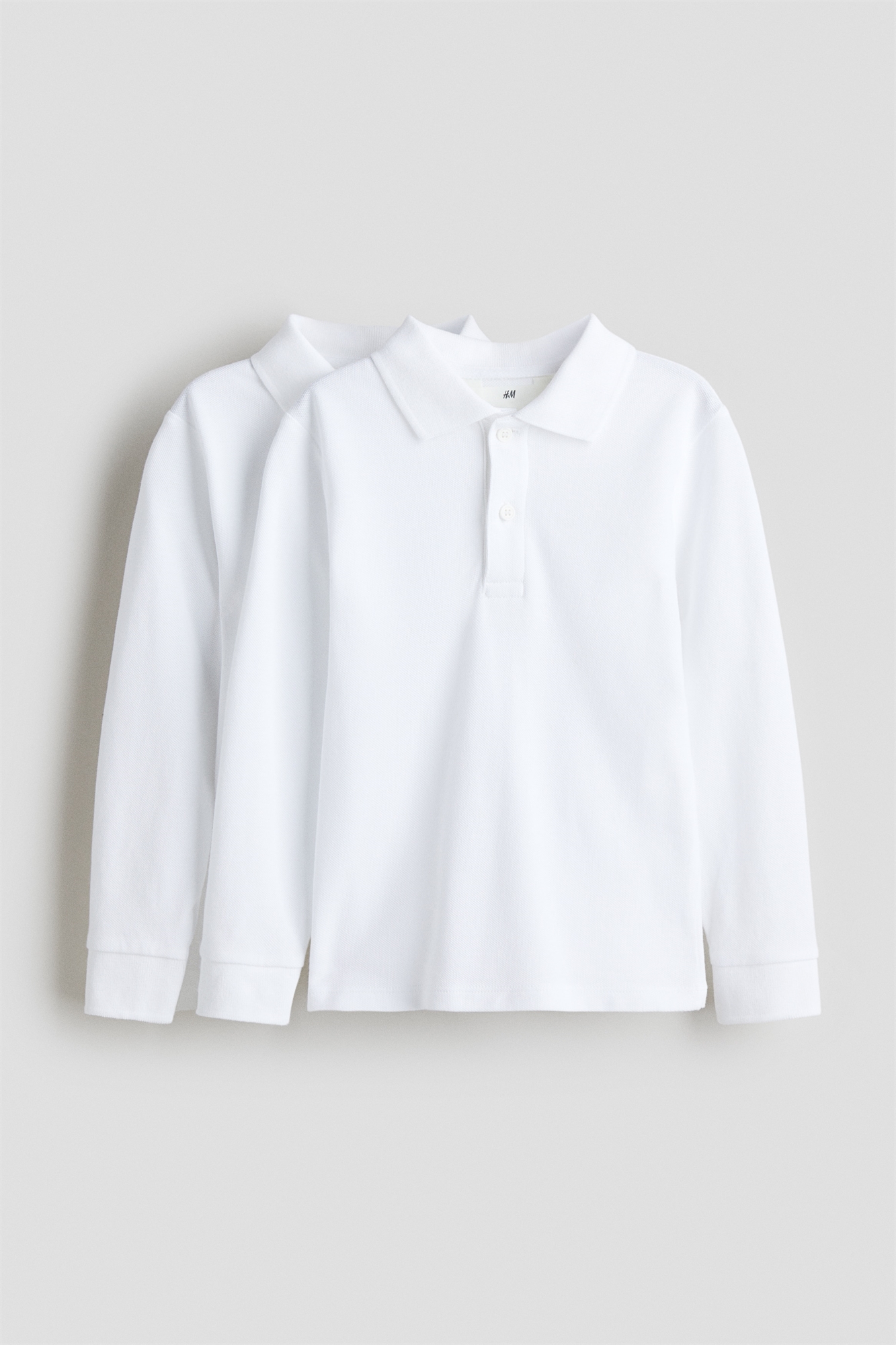 Школьные рубашки-поло с длинными рукавами из хлопкового пике с ребристым воротником, застежкой на пуговицах, манжетами и короткими разрезами по бокам подола.