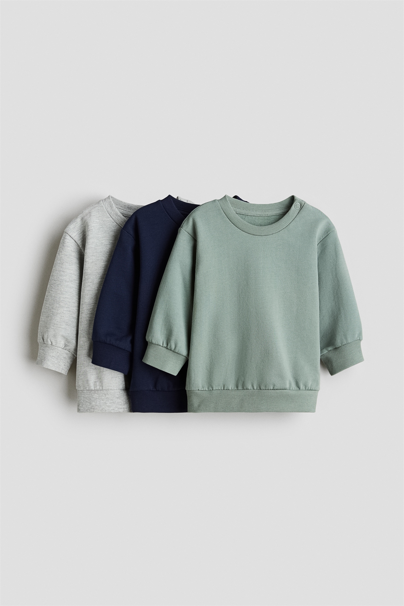 Топы с длинными рукавами из хлопковой толстовочной ткани с круглым вырезом и кнопкой на одном плече (кроме размеров 2-4Y). Окантовка по вырезу горловины, манжетам и подолу. Мягкий начес внутри.