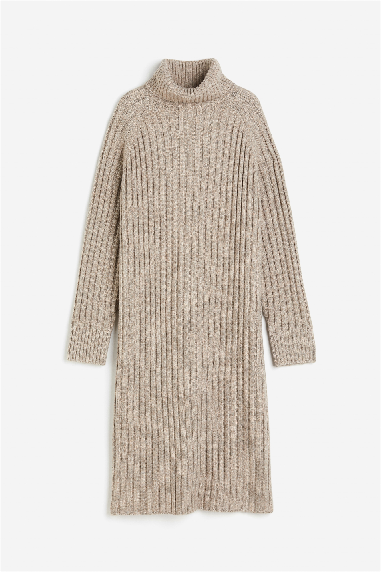 Длинное платье из мягкого трикотажа с добавлением шерсти, с горловиной поло и длинными рукавами реглан. Ребристые манжеты и подол.