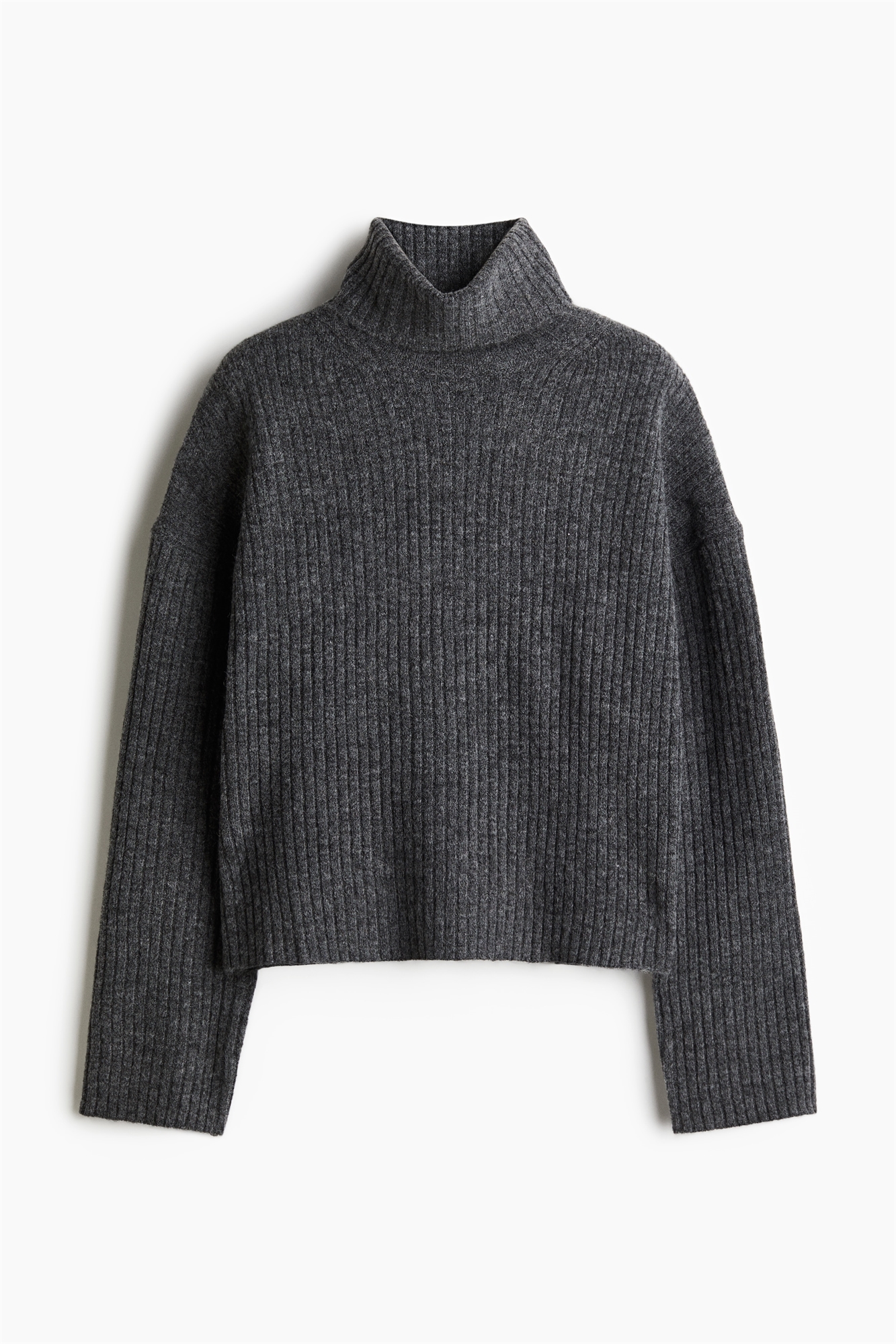 Джемпер с вырезом поло больших размеров из трикотажа в рубчик с добавлением шерсти. Низкие спущенные плечи и длинные рукава.