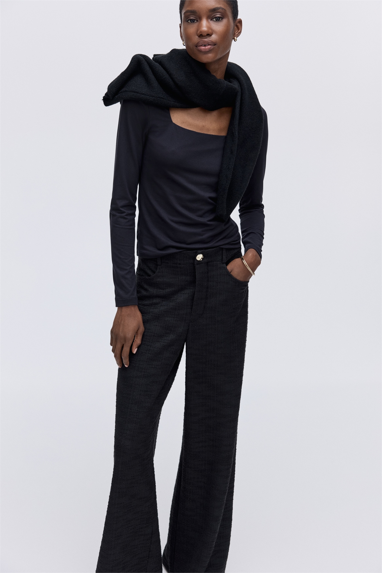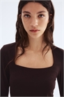 Облегающая футболка из мягкого трикотажа с квадратным вырезом и длинными рукавами.