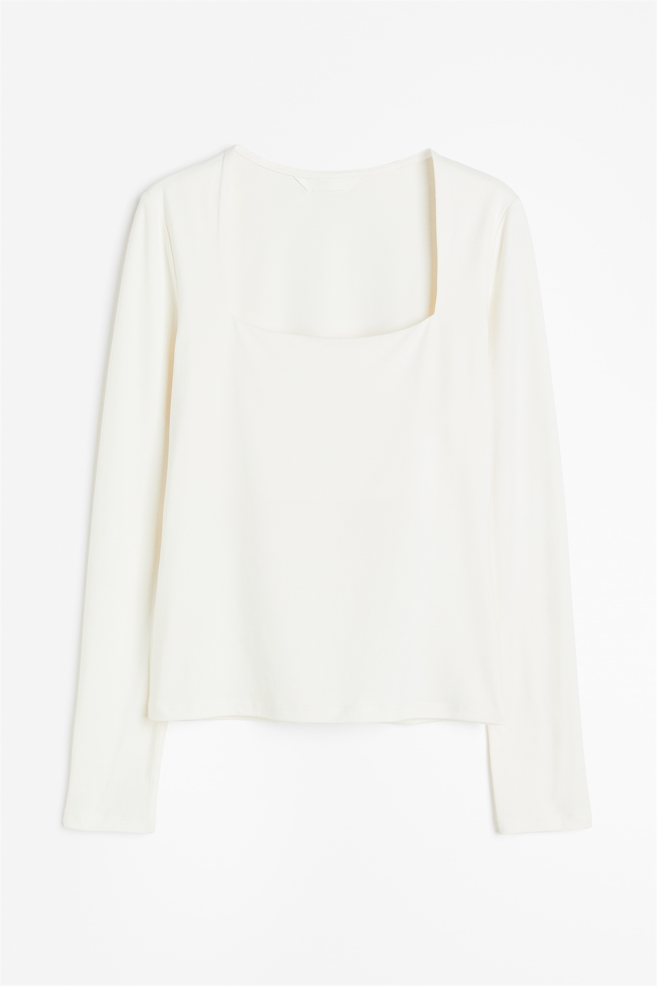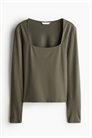 Облегающая футболка из мягкого трикотажа с квадратным вырезом и длинными рукавами.