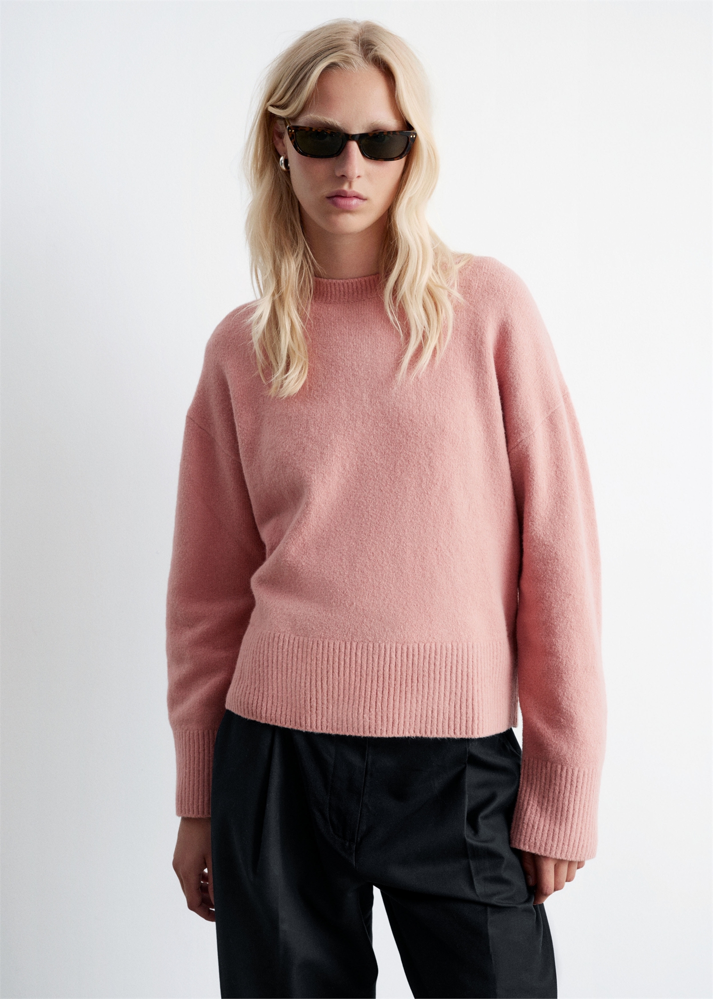 Трикотажный джемпер с длинными рукавами и непринужденным силуэтом. Окантован ребристым вырезом, манжетами и подолом Длина джемпера: 53 см / 20,9" (размер S)