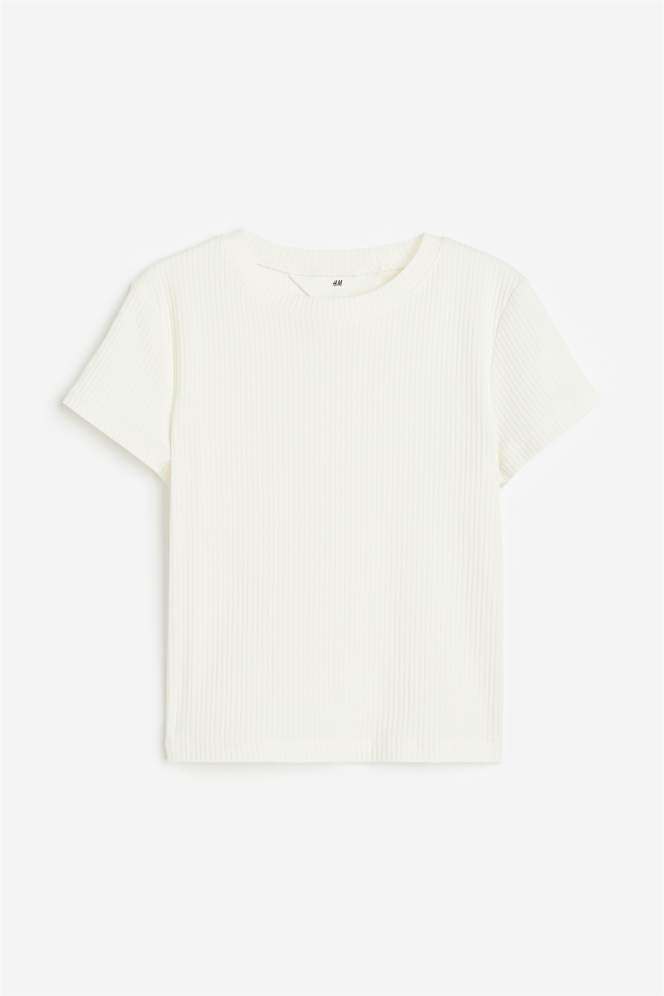 Топ с короткими рукавами из мягкого ребристого хлопкового джерси с окантовкой по вырезу горловины и подолом, обработанным оверлоком.