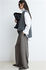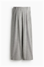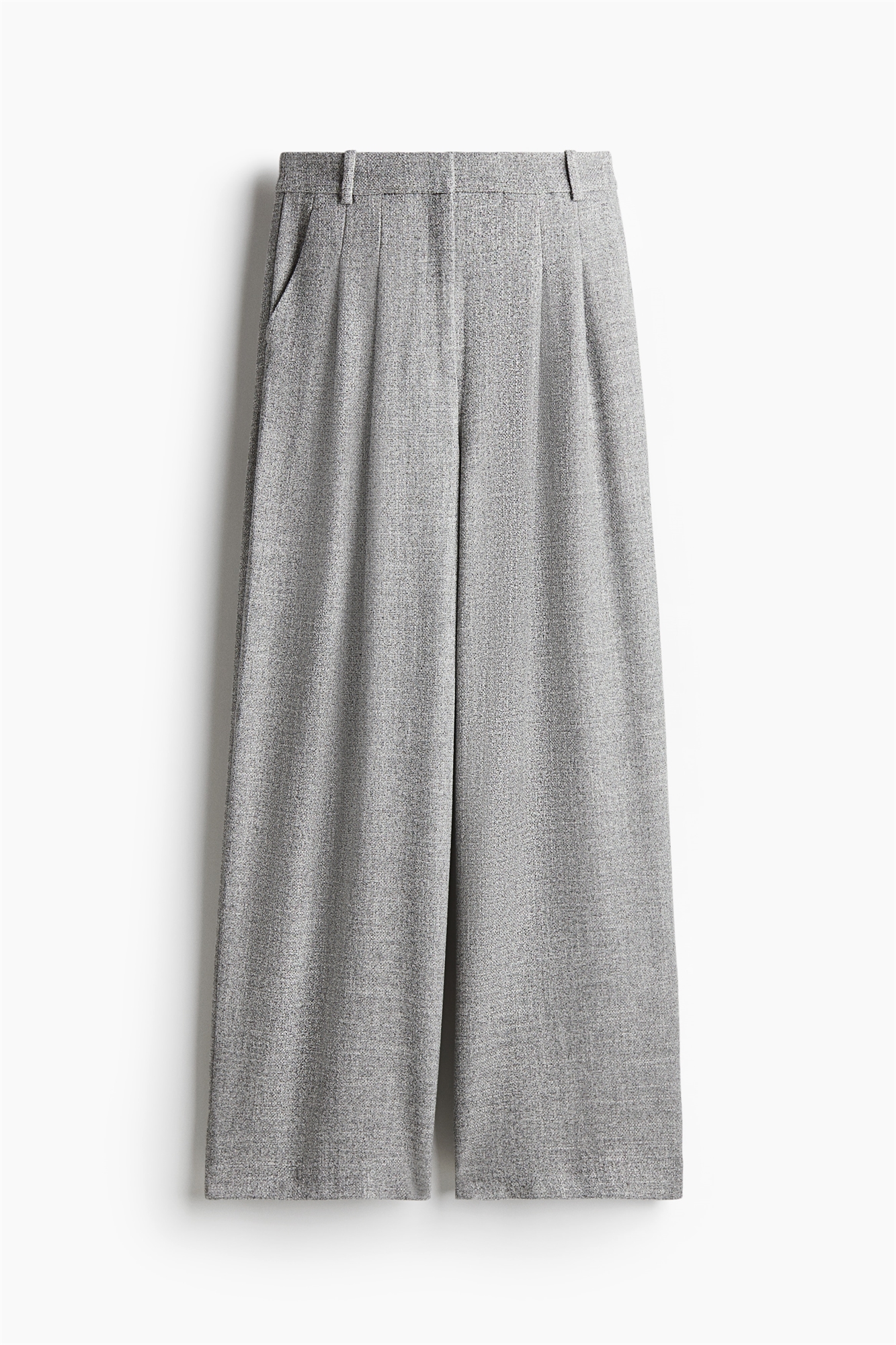 Приталенные брюки свободного кроя из тканого материала. Высокая талия со скрытой эластичной резинкой и ширинкой на молнии. Диагональные боковые карманы и втачные задние карманы. Широкие прямые ноги со складками спереди.
