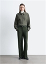 Брюки с длинными прямыми ногами, украшенными острыми складками. Карманы в боковых швах, два накладных кармана сзади и ширинка на молнии с застежкой на крючок и планку. Длина штанины: 77 см / 30,3 дюйма (EU 36 / UK 10 / US 4)