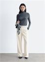 Брюки с длинными прямыми ногами, украшенными острыми складками. Карманы в боковых швах, два накладных кармана сзади и ширинка на молнии с застежкой на крючок и планку. Длина штанины: 77 см / 30,3 дюйма (EU 36 / UK 10 / US 4)