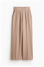 Приталенные брюки из джерси с высокой эластичной талией. Свободный крой с диагональными боковыми карманами и широкими ногами со складками в верхней части и складками спереди.