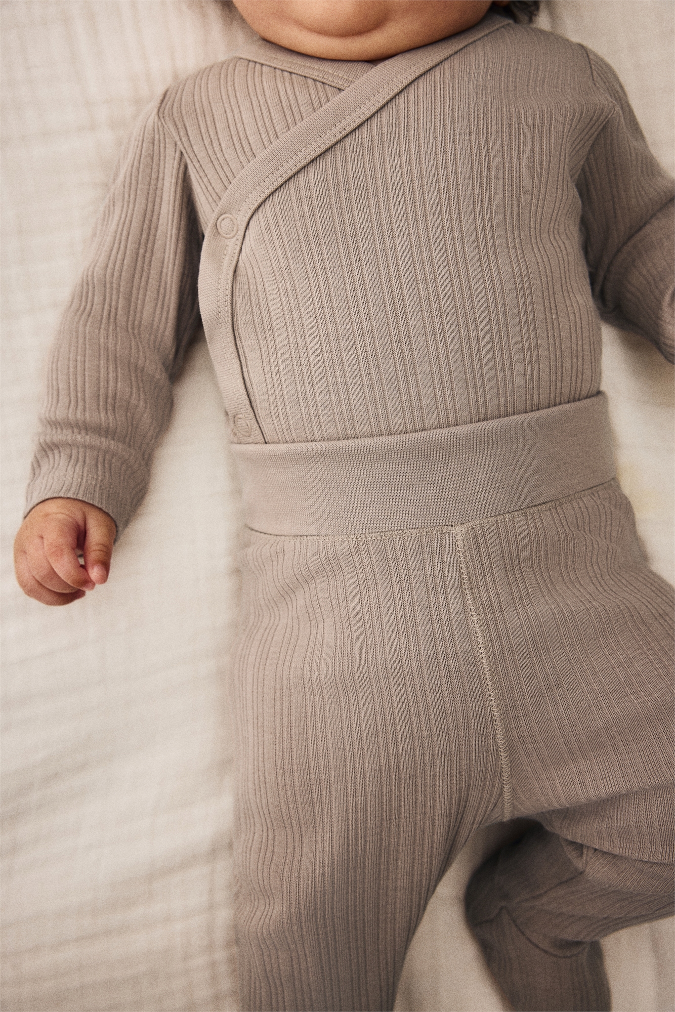 Леггинсы из мягкого, ребристого хлопкового джерси с широкой складчатой панелью на талии и полными ступнями с эластичными пятками.