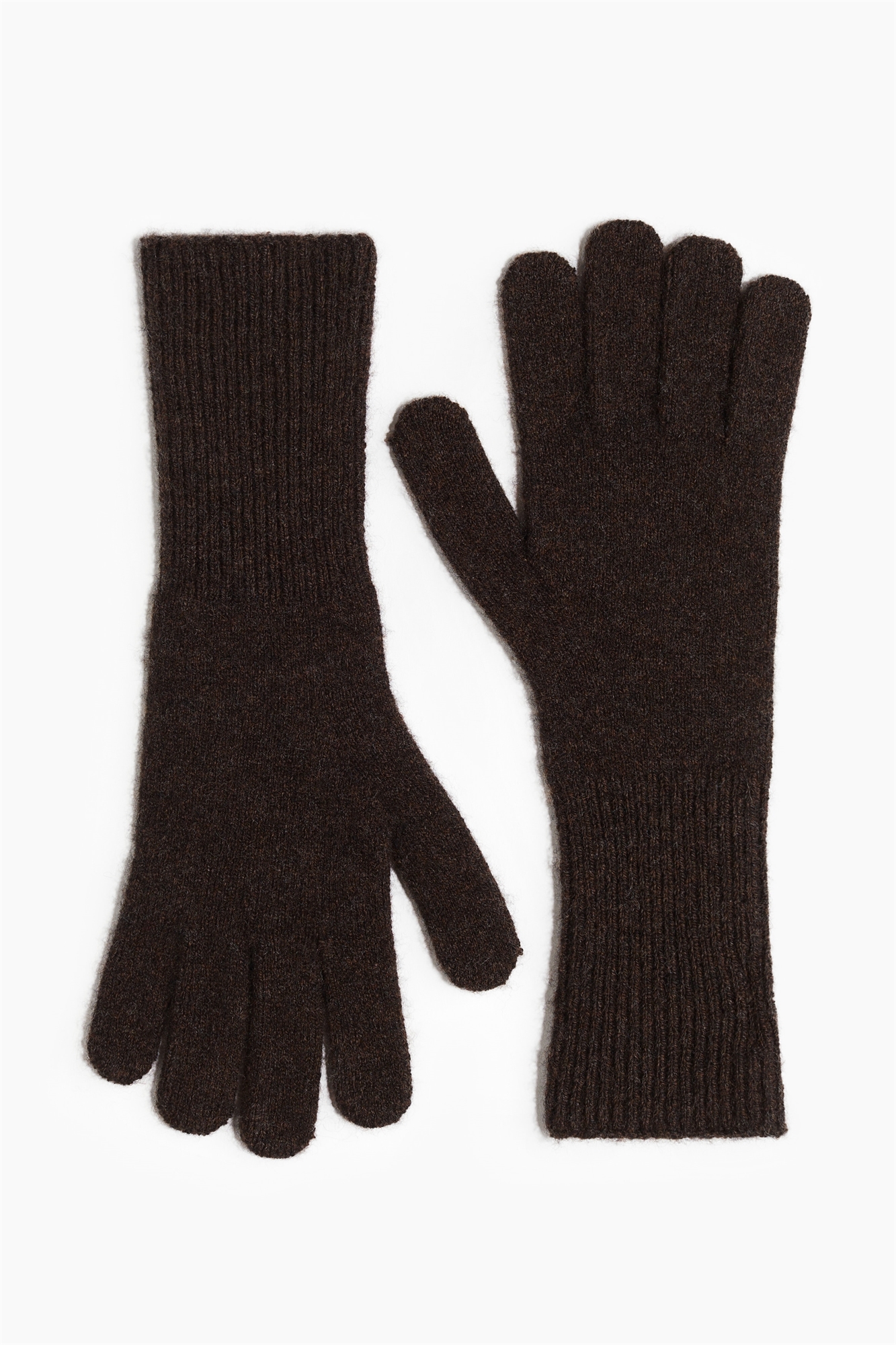 Перчатки из мягкой шерсти и кашемира тонкой вязки с манжетами в рубчик.