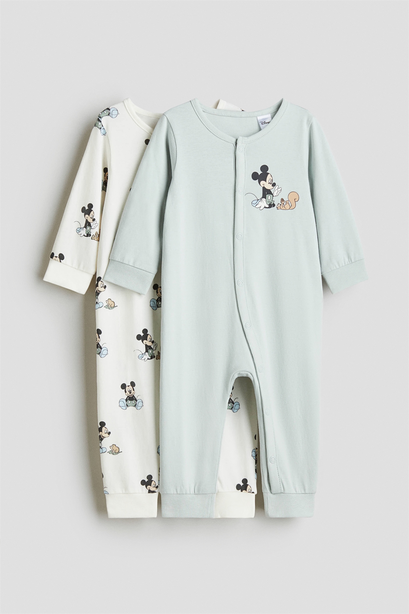 Пижама с длинными рукавами из мягкого хлопкового джерси с набивным рисунком, застежками на кнопках спереди и вдоль одной штанины, а также тесемками на манжетах и кайме.