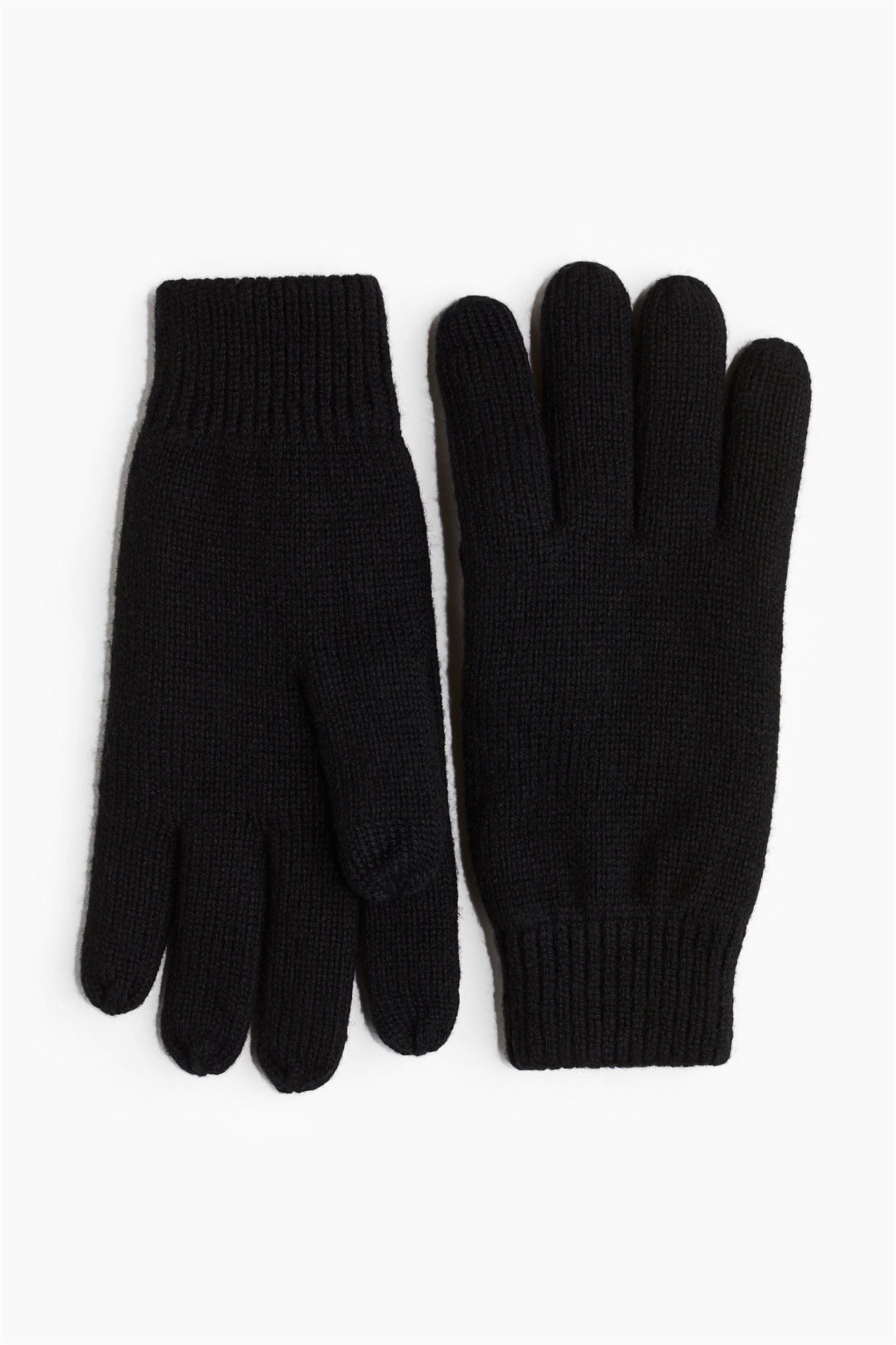 Перчатки из мягкого тонкого трикотажа с ребристыми манжетами. Верхняя часть большого, указательного и среднего пальцев выполнена из материала, совместимого с сенсорными экранами.
