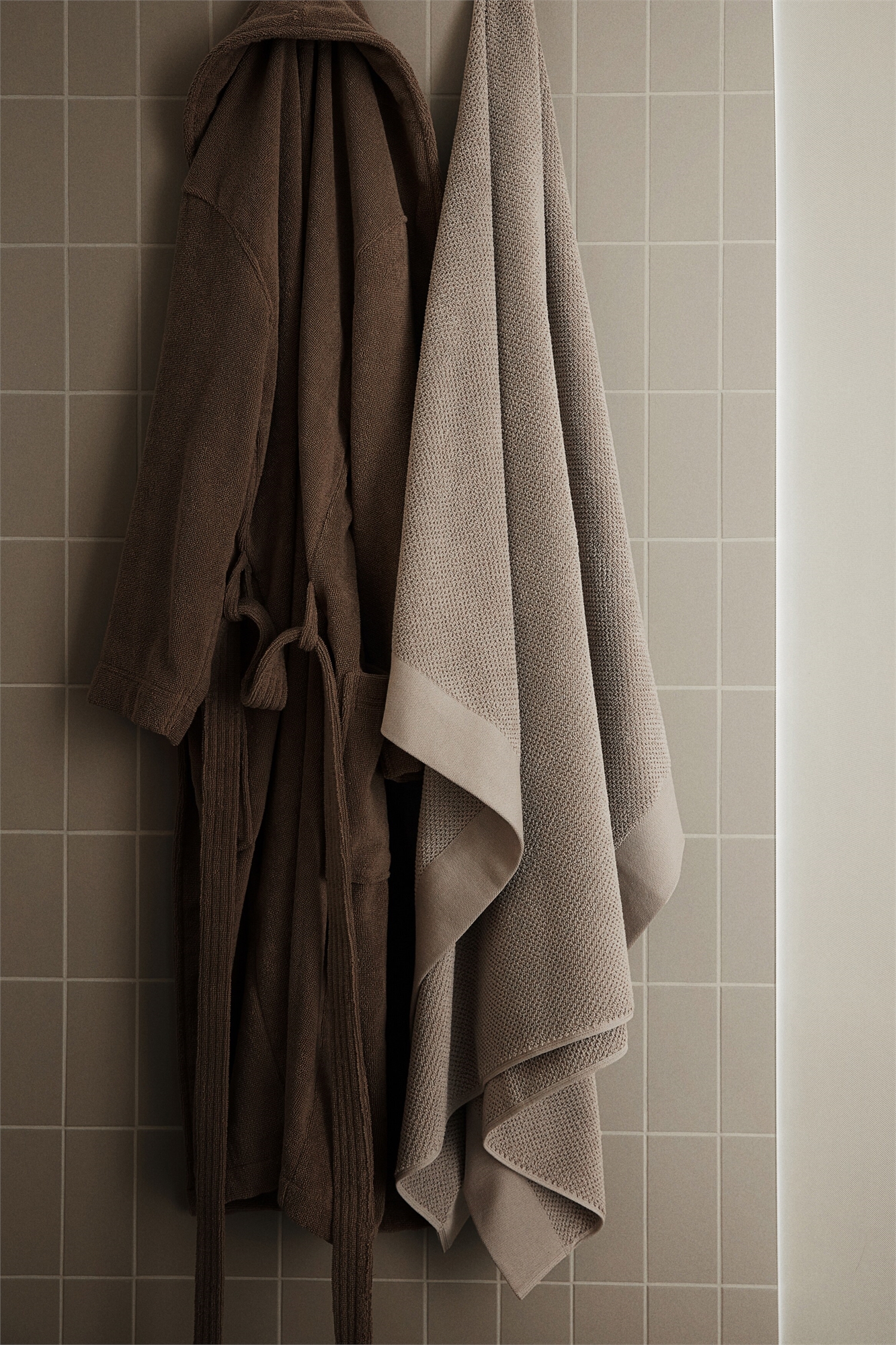 Классическое банное полотенце из мягкой, быстросохнущей хлопковой махры с высокой степенью впитываемости. Петля на одной длинной стороне для подвешивания. В серию входят полотенца разных размеров. 550 GSM.