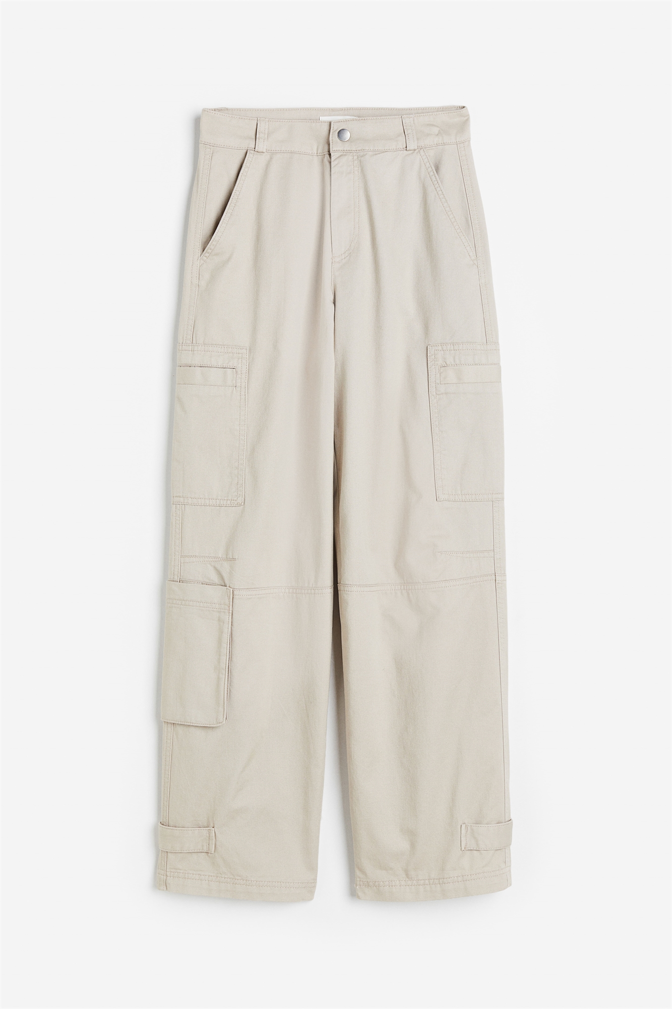 Брюки из хлопковой саржи с обычной талией, ширинкой на молнии и пуговице, диагональными боковыми карманами, открытыми задними карманами и тремя карманами на ногах. Прямые ноги с регулируемой вкладкой на подоле.
