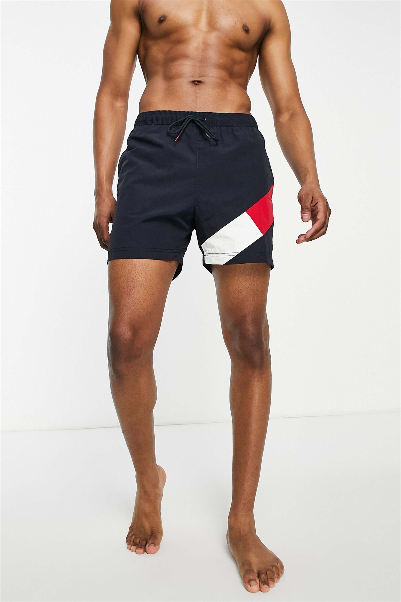 Плавательные шорты средней длины с логотипом на штанине темно-синего цвета