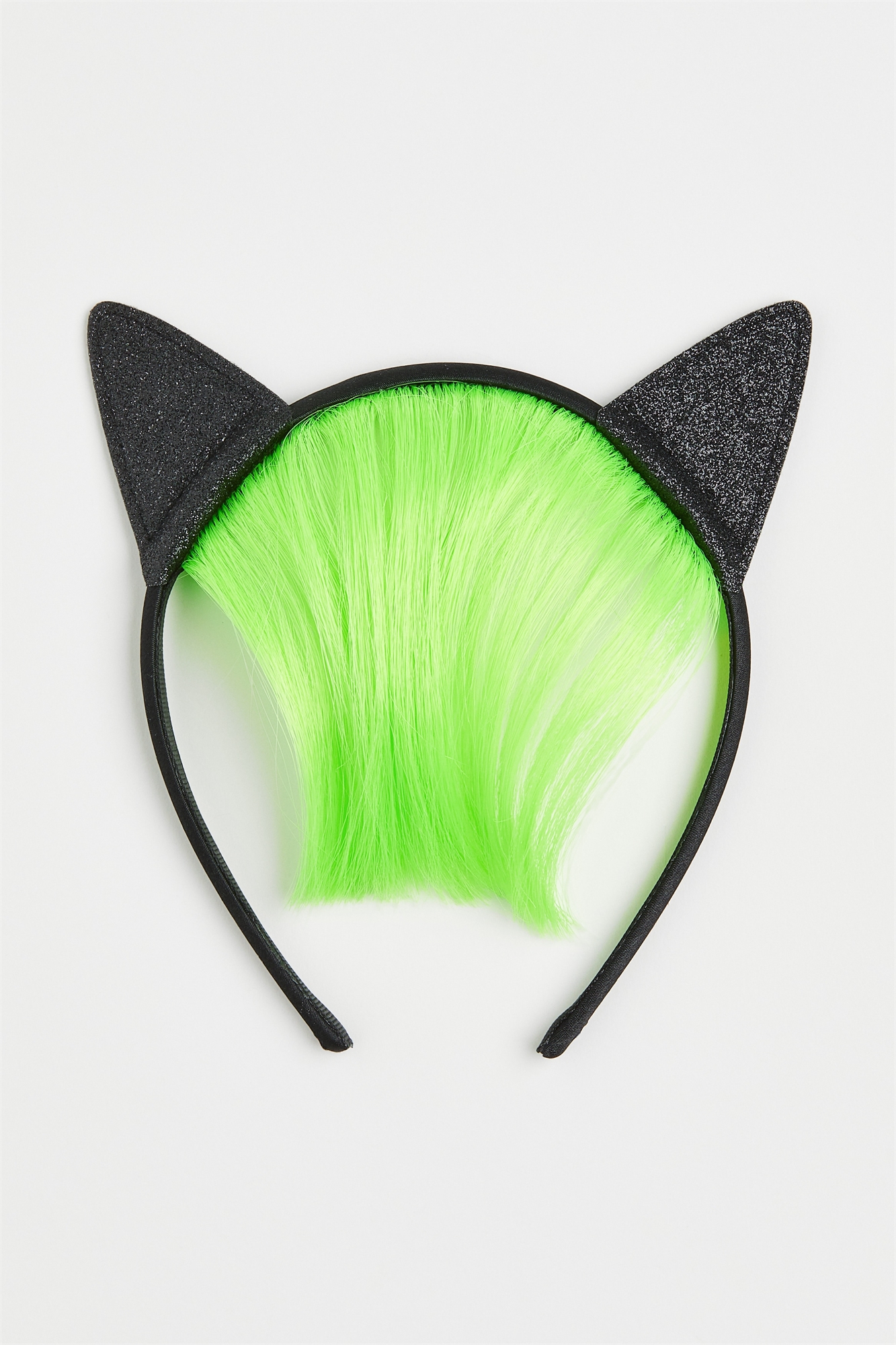 Атласная лента Alice с аппликацией в виде блестящих кошачьих ушек и бахромой неонового цвета.