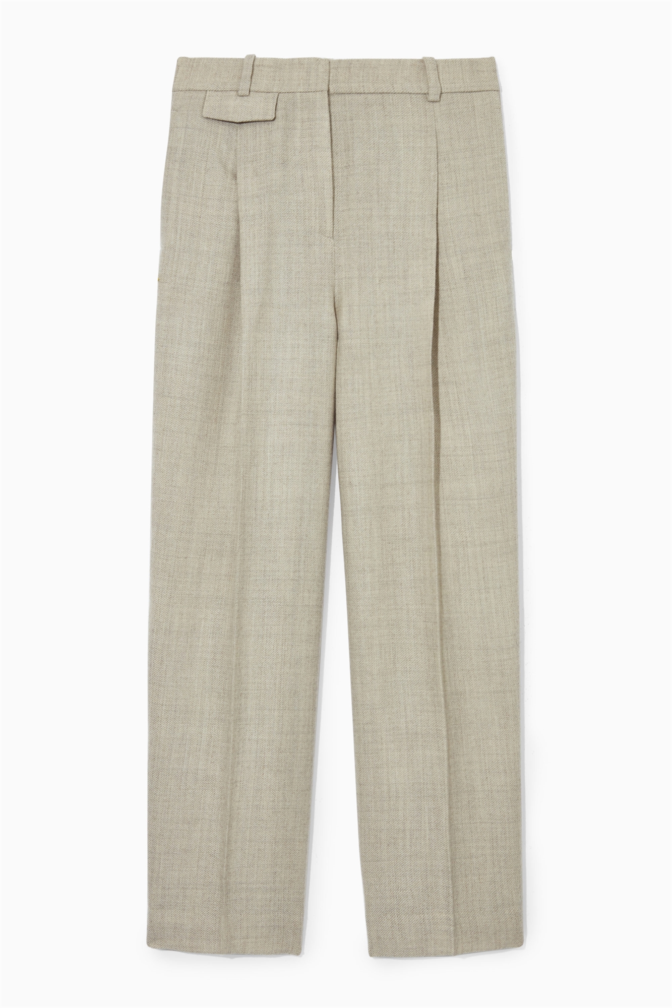 Качественные шерстяные брюки прослужат в вашем гардеробе долгие годы, а эти, выполненные в нейтральном кремовом цвете, имеют бесконечные возможности для создания стиля. Изготовленные из чистой шерсти, они имеют плиссированные широкие штанины и регулируемый пояс, который позволяет носить их на бедрах или с низкой посадкой для непринужденного силуэта. Для создания полного комплекта носите их с соответствующими вещами. - Regular fit - Боковые карманы, передний карман для монет - Сертифицированы в соответствии со стандартом Responsible Wool Standard для защиты благополучия овец и окружающей среды 100% шерсть RWS / Сухая чистка Внутренняя длина штанины размера EU 36 составляет 73,5 см / Модель носит размер EU 36